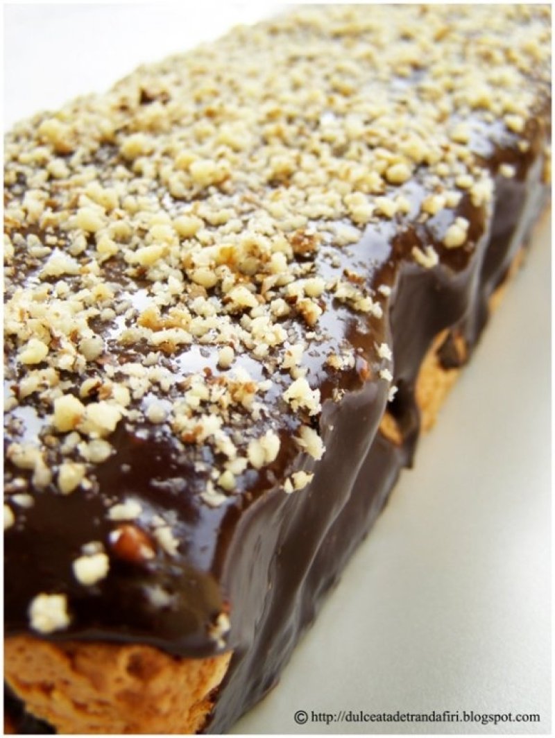 In fotografii, cacaoa s-a rusinat si s-a ascuns la o felie mai incolo (se vede doar un inceput timid in sectiune), dar te asigur ca am pus din belsug :). Pofta buna!