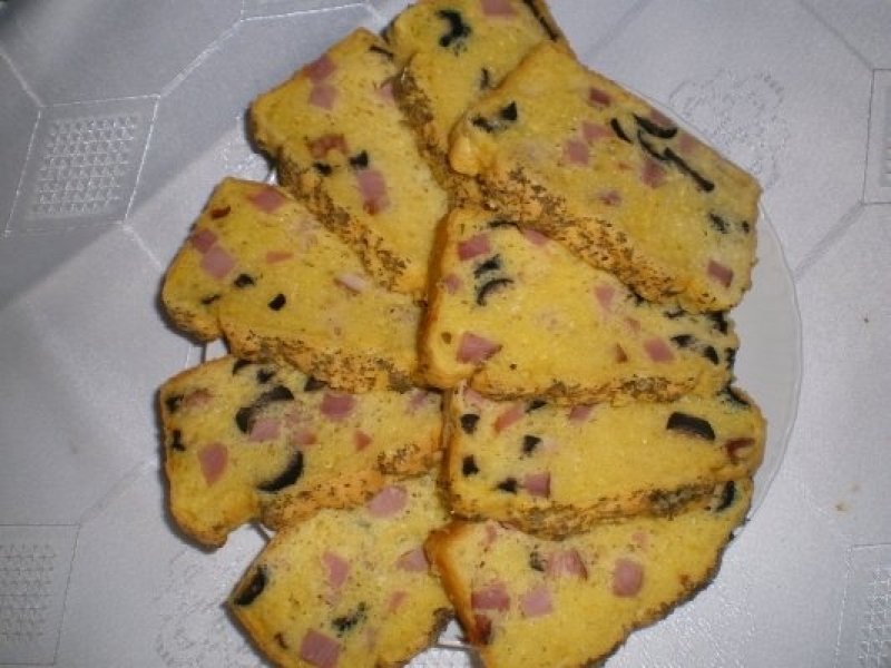 Se bat albusurile spuma cu un praf de sare.Se adauga galbenusurile frecate separatapoi faina amestecata cu praful de copt.Jambonul se taie cubulete mici,cascavalul se rade si maslinele se taie rondele dupa care toate se adauga in compozitia de dinainte.Se unge o tava cu unt se tapeteaza cu faina si se toarna compozitia in ea.Pe deasupra checului se presara busuioc si se coaca checul la foc potrivit 40 min pana c incercat cu o scobitoare nu se mai ia nimic de pe ea.Se lasa sa se raceasca si apoi se scoate din tava.
