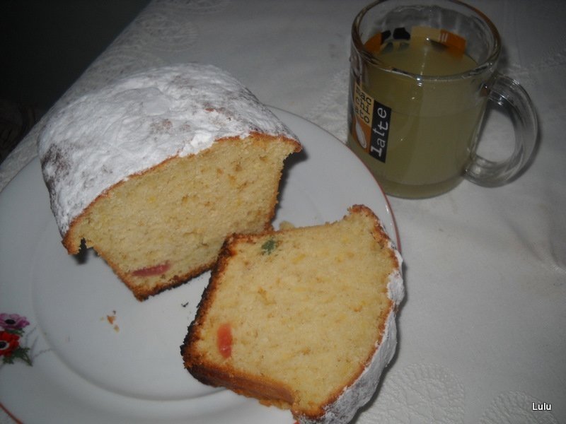 Ouale,mixate bine cu zahar, zahar vanilat, unt, coaja rasa si zeama de lamaie apoi se adauga faina amestecata cu praful de copt si amidon; aceasta compozitie se amesteca usor cu suc de lamaie, pana se ajunge la consistenta unui aluat de chec (care curge); se toarna in forma unsa si tapetata cu faina sau hartie de copt iar la cuptor se tine 45min la foc moderat; dupa ce s-a racit se pudreaza cu zahar farin.