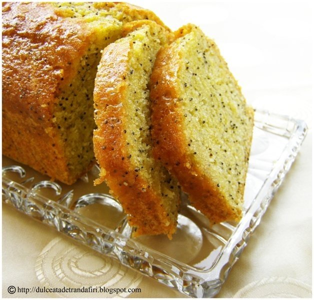 Cred ca este cel mai delicat chec pe care l-am pregatit ori mancat pana acum, cu o aroma foarte subtila de lamaie si un aspect sugubat dat de bobitele de mac, o sa te incante tocmai pentru ca nu este ceea ce te astepti de la un chec. Atata doar, pregateste-te sa te "lipicesti" :).