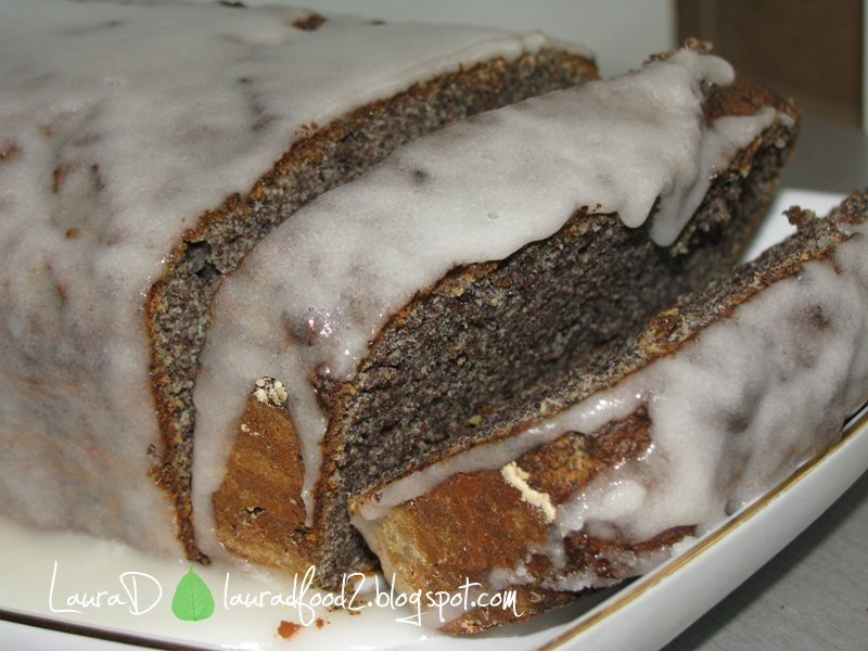 Faina se amesteca cu praful de copt si mixul de condimente si se incorporeaza in compozitia cu mac.Se inglobeaza albusurile batute spuma.Aluatul obtinut se toarna in tava pregatita si se da la copt pana cand la inserararea unei scobitori in centru aceasta va iesi curata, aprox.40 minute.