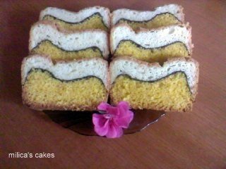 -peste stratul de cacao se adauga cu o lingura,cu grija compozitia alba si se niveleaza usor