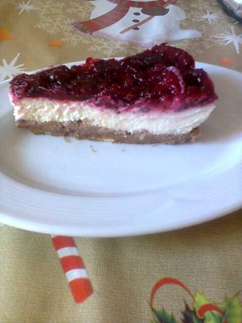 In timpul asta s-au scurs cele 20 minute de fiert fructele, asa ca puneti plicul de tort jelee, mai lasati sa fiarba 1 minut, amestecand bine si gata. Lasati sa se raceasca putin cat sa nu fie foarte fierbinti si le rasturnati peste crema.