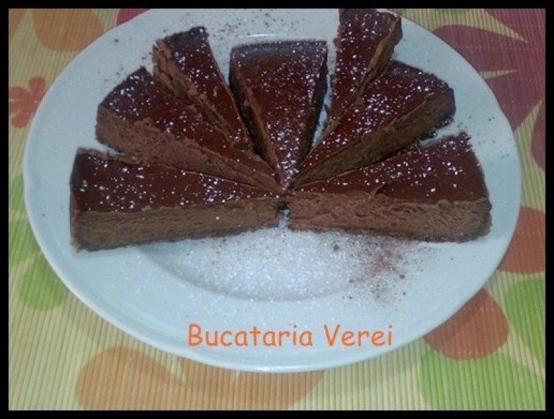 Turam compozitia peste blatul de biscuite,nivelem si introducem in cuptorul cald 150°C timp de 55 minute!