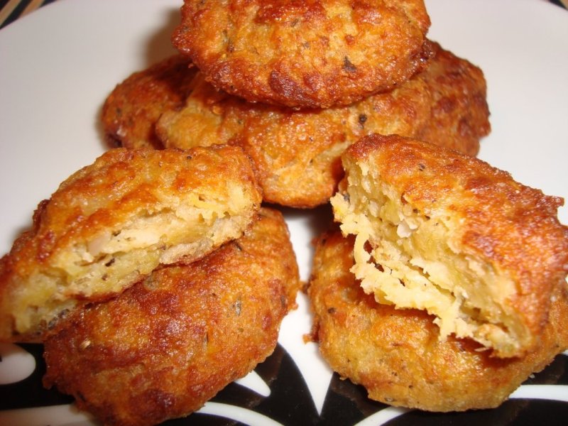 Cartofi ii dam prin razatoarea mica dupa care ii scurgem, ii punem intr-un bol, peste care punem soia scursa de apa bine, apoi ouale, ustoroiul, sare, piper, boia, ierburile si amestecam bine, apoi adaugam faina cam aproximativ 3-4 lg de faina si punem si 5 lg de ulei in compozitie, amestecam totul bine apoi punem pesmetul pana devine o compozitie usor de modelat.