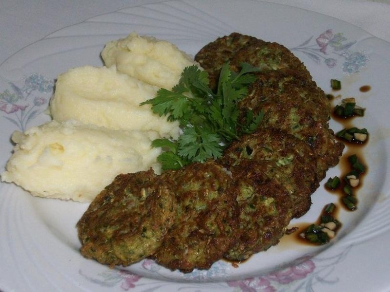 Se potriveste de sare si piper.Din compozitia rezultata,se formeaza chiftelute.Chiftelutele se prajesc;apoi,se pun pe servet sbsorbant,sa se extraga surplusul de grasime.