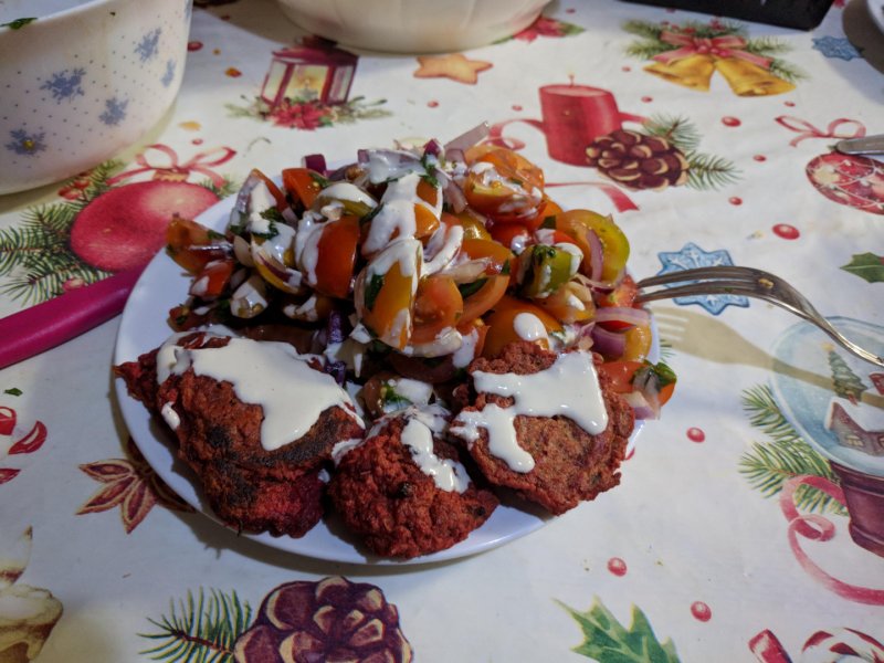 In oala robotului se pun boabele de linte, ceapa, ardeiul iute, sfecla, usturoiul si se actioneaza pana totul se transforma intr-o compozitie. Se adauga sare, piper, putin cardamon, patrunjelul si uleiul si ovazul si se actioneaza din nou pana totul se transforma intr-o compozitie unita si se pot face chiftelute.