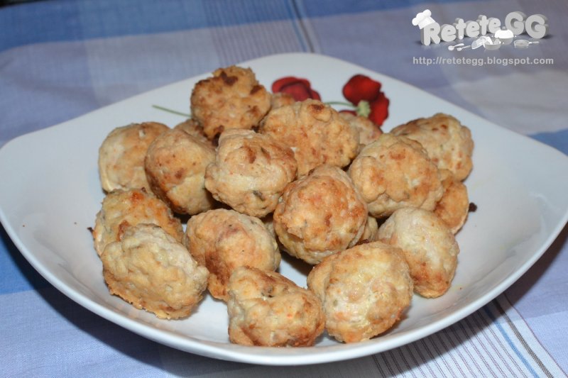 Am omogenizat cu mana amestecul, apoi am format chiftelute mici si le-am prajit in ulei incins, rumenindu-le pe toate partile.