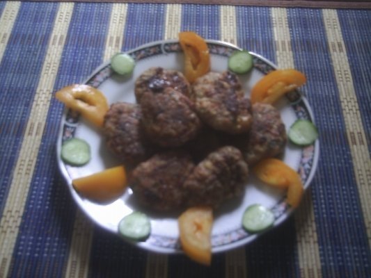 Asezati carnea tocata intr-un lighenus,adaugati ceapa tocata,usturoiul zdrobit,verdeata tocata,painea inmuiata,stoarsa si faramitata,cartoful,morcovul.