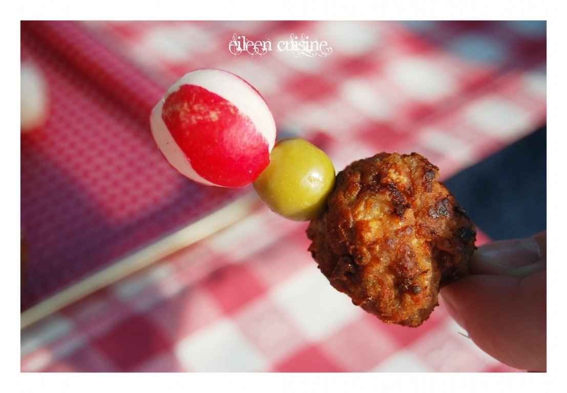 Cartoful se da pe razatoarea mica. Se dau prin masina toate ingredientele in afara de faina. Se formeaza chiftelutele de 4-5 cm, se dau prin faina apoi se prajesc in ulei incins. Se scot pe un servet de bucatarie. Se pot servi cu masline si ridichi.