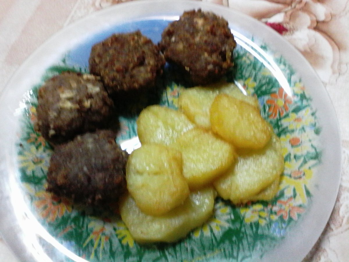 Amestecam carnea cu ulei si ouzo. Punem menta, usturoi, patrunjel, marar si ceapa in blender si amestecam. Punem peste carne, adaugam sare, piper, oregano si paine bine scursa si amestecam bine. Acoperim cu folie alimentara si punem la frigider pentru 30 de minute. Facem chiftelutele, le tavalim prin faina si le prajim pe ambele parti. Le puteti servi cu cartofi ( i-am fiert si apoi i-am prajit putin in unt).