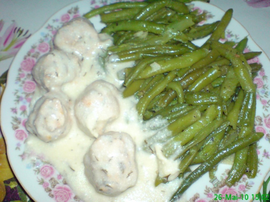 Sos alb: Se topeste untl si se adaua faina amestecant incontinuu sa nu se faca cocoloase se toarna cate un pic pana se leaga bine din supa unde au fiert chiftelutele~300 ml si se lasa sa dea in clocot dupa care se adauga smantana si chiftelutele se lasa sa dea cateva clocote dupa care se ia de pe foc.