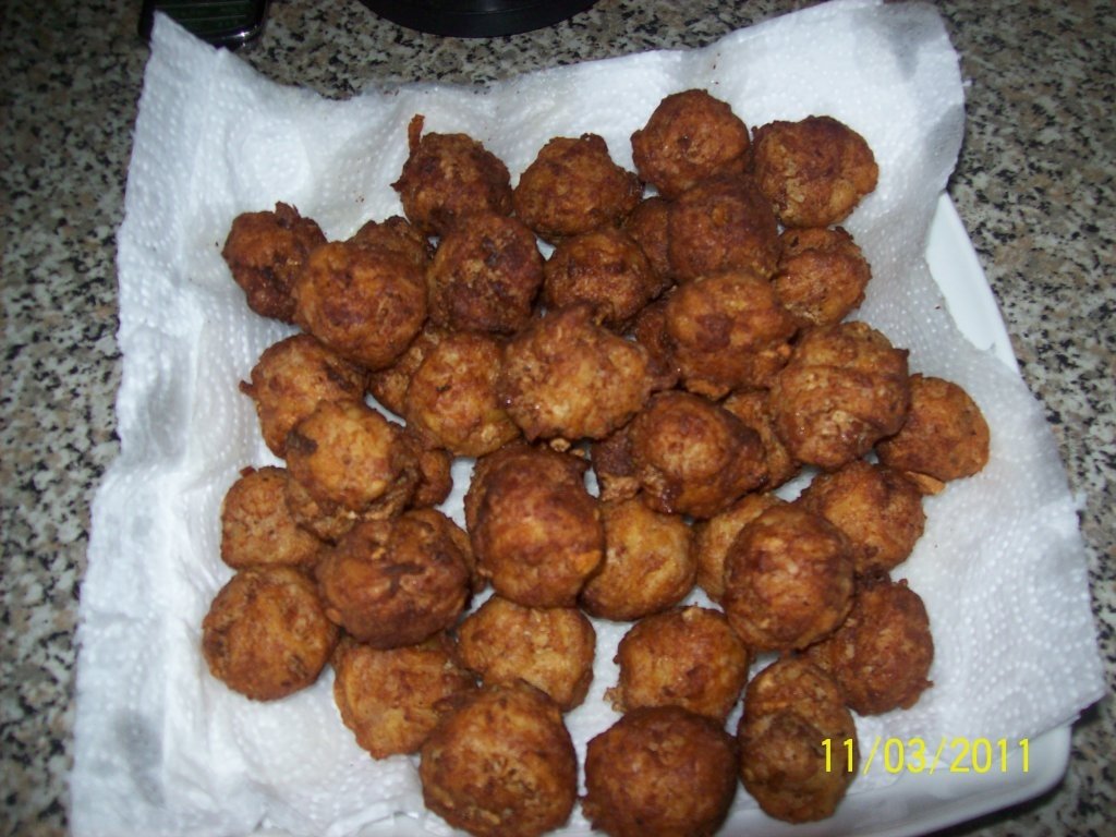 Se curata cartofii de coaja si se da prin razuitoare dupa care se pun intr-un castron. Se curata si usturoiul si se piseaza. Peste carne se adauga cartofi storsi bine, usturoiul, ouale, sarea, piperul si cimbrul. Se amesteca foarte bine. Se formeaza chiftelutele si se pun la prajit. Se pot face de diferite forme, dupa gust. Se scot chiftelutele si se pun pe o farfurie cu hartie de bucatarie ca sa absoarba excesul de ulei.