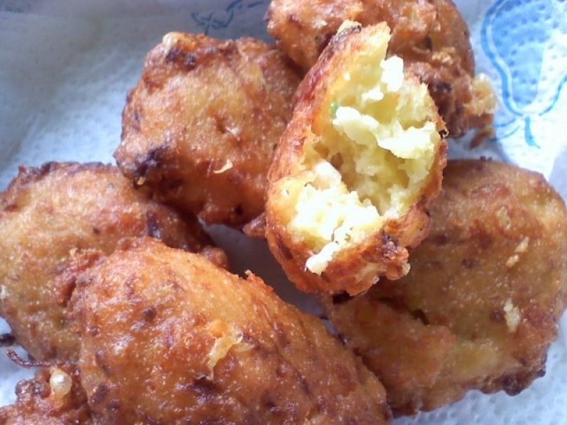 Am dat pe razatoarea mare dovleceii.I-am lasat la scurs dar i-am mai si stors de 2 ori.Este foarte important sa fie bine storsi caci altfel se cam imprastie prin tigaie. Branza de asemenea am ras-o pe razatoarea mare si am adaugat-o peste dovleci.Urmeaza ouale intregi, pesmetul, bicarbonatul, faina, sarea si piperul.Daca mai trebuie faina puteti sa mai adaugati...consistenta trebuie sa fie ca a unei smantani groase.