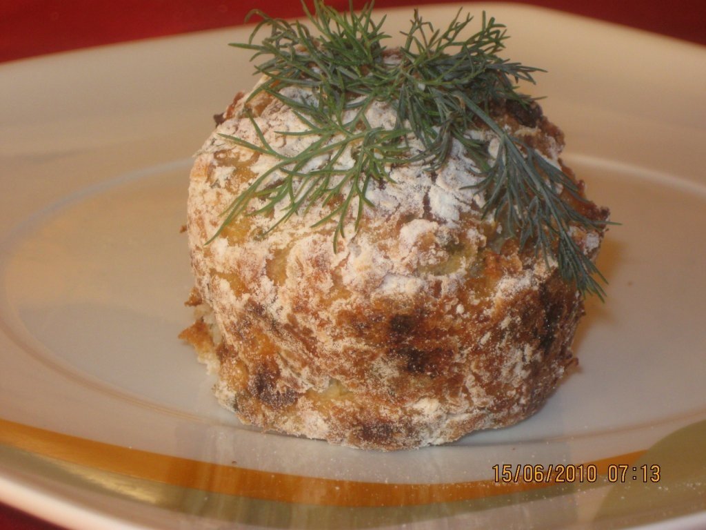 Se formeaza chiftelute care se trec prin faina, se aseaza in tava de briose unsa cu ulei si tapetata cu faina si se dau la cuptor.Se pot si praji dar eu le-am preferat coapte.Se lasa sa se rumeneasca , se scot din cuptor , se lasa sa se racoreasca putin si apoi se scot din forma.Se servesc atat calde cat si reci cu mult marar .