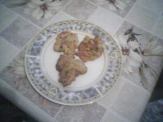 Se caleste rosia si ardeiul si se lasa la scurs intr-o strecuratoare.Se face un aluat ca de clatite cu cele 2 oua si faina,se adauga compozitia calita(rosia si ardeiul),mararul tocat,sare si piper dupa gust.Cu lingura se ia din umplutura si se prajeste in ulei incins.Vor iesi in jur de 15 bucati.