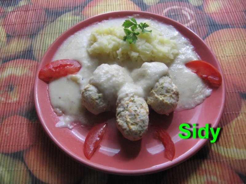 Chiftelutele le servim cu sosul de cascaval si cu piure de cartofi sau cu pilaf.