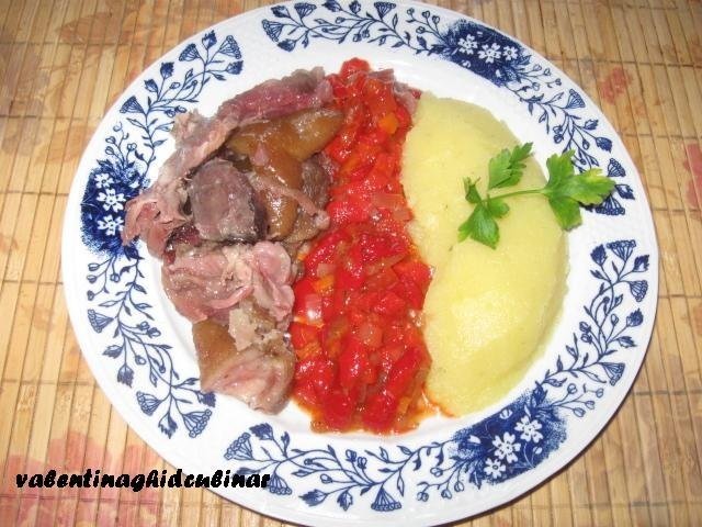 Eu am pregatit un piure de cartofi in care am adaugat la sfarsit nucsoara si o mancarica de ardei capia copti .