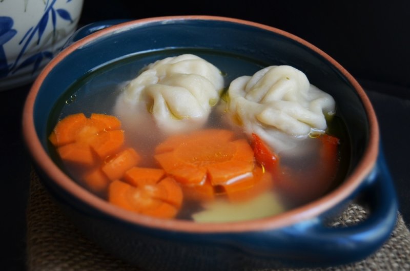 Morcovul curatat si spalat, taie-l rondele si pune-l impreuna cu ceapa (curatata si spalata) intreaga, cu ardeiul taiat in fasii mari si cu foaia de dafin in apa la fiert. Cat fierb legumele pregateste aluatul si umplutura. Nu uita sa scoti ceapa din supa dupa ce a fiert.