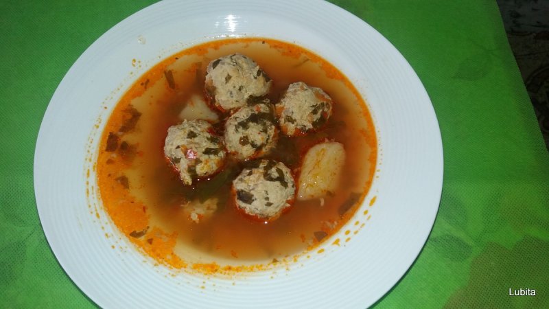 Se potriveste de gust, adaugand apa de la fiertul perisoarelor, cand incepe sa clocoteasca, se adauga perisoarele, se potriveste din nou de gust, se adauga leusteanul oprit,taiat marunt, iar dupa 2-3clocote se opreste focul.