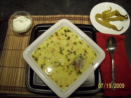 Se fierbe burta cam pe jumatate, se scoate si se taie feliute subtiri apoi se fierbe mai departe. Eu schimb apa si pun si ceapa intreaga ca sa inmoaie un pic burta. Se pune si osul bine spalat sa fiarba cu burta. Se adauga morcovul ras si se fierbe bine burta. Dupa ce s-a fiert se adauga usturoiul zdrobit, leusteanul maruntit. Se amesteca galbenusele de la oua cu smantina si se adauga la ciorba. Se serveste cu ardei iute.