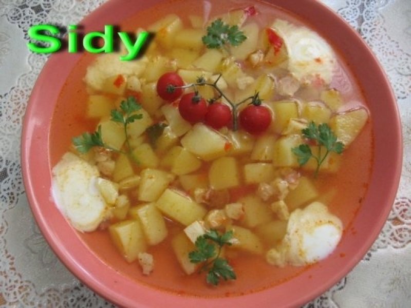 Se curata cartofii si se taie cubulete.Ardei se taie fasii subtiri apoi cibulete. Ceapa curatata se lasa intreaga.