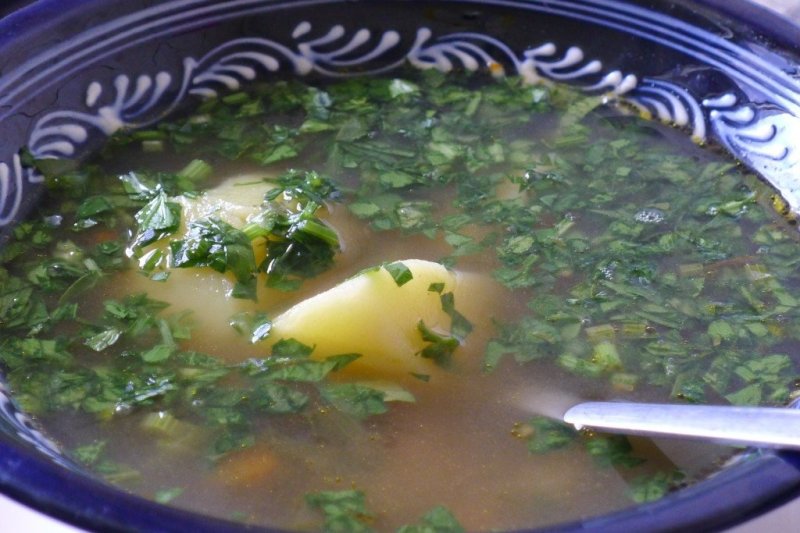 6. Se serveşte caldă, presărată cu leuştean şi se poate drege cu un gălbenuş de ou.