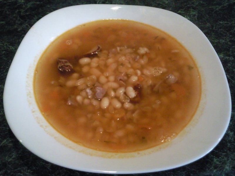 Fasolea se alege , se spala si se pune in apa rece cu o seara inainte de a fi preparata pentru ca astfel va fierbe mai repede si se va inmuia. A doua zi se pune la fiert in apa rece impreuna cu pastarnacul curatat si ceapa intreaga curatata . Cand bobul fasolei a inceput sa pocneasca , se adauga afumatura , mararul , patrunjelul ( tocate marunt ), morcovul taiat rondele si se continua fierberea . Cand fasolea a fiert suficient , se adauga bulionul , se amesteca si se mai fierbe inca 10-15 minute , dregandu-se totodata de sare si piper .
