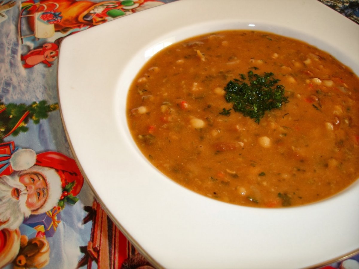 Alegem fasolea de impuritati, o punem in apa rece de seara iar a doua zi o spalam si o fierbem separat cea alba de cea rosie in apa fierbinte. Adaugam in fiecare oala cate 1 lgt rasa de bicarbonat, 1 cartof si 1 lgt de zahar, bicarbonatul si zaharul le puteti adauga doar in ultima apa schimbata. Dupa vreo ora schimbam apa cu alta fiarta. Puteti schimba vreo doua trei ape dar sa fie fierbinte. Punem condimente si cand a fiert fasolea o mutam in oala de ciorba. Adaugam apa fierbinte si legumele calite : ceapa, morcovul ras fin si capia cubulete. Adaugam si radacinoasele rase prin razatoarea mare. O parte din fasole o mixam si-o adaugam inapoi in oala, mie imi place sa fie putin crema. Cand au fiert bine punem bulion, verdeata si acritura. E foarte buna atat rece cat si calda.