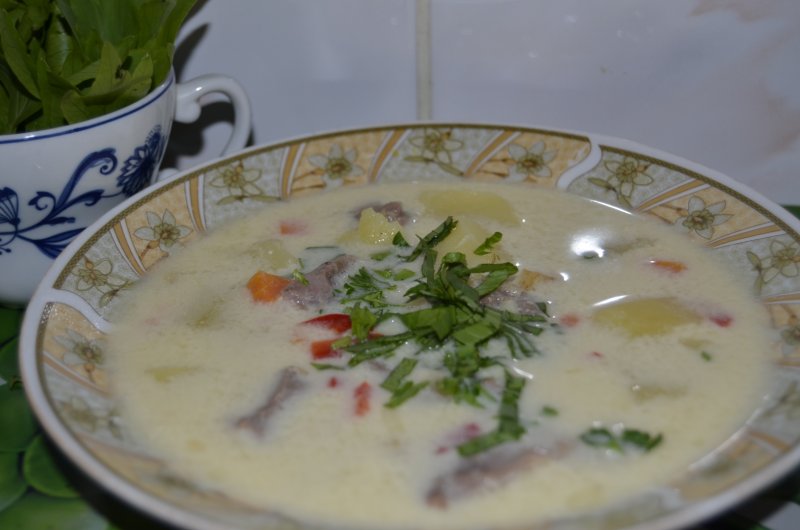 -Dupa circa cinci minute dupa ce se opreste focul,se adauga compozitia de smantana peste ciorba,se adauga leusteanul tocat marunt si se amesteca usor.Sa aveti pofta dragilor!
