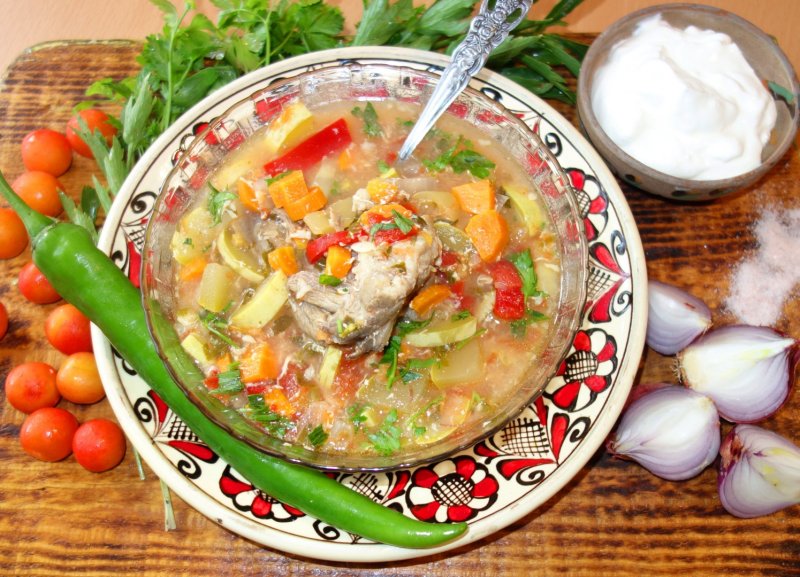 La final se adauga leustean si patrunjel fin tocate.Se serveste cu smantana, ceapa rosie si ardei iute.