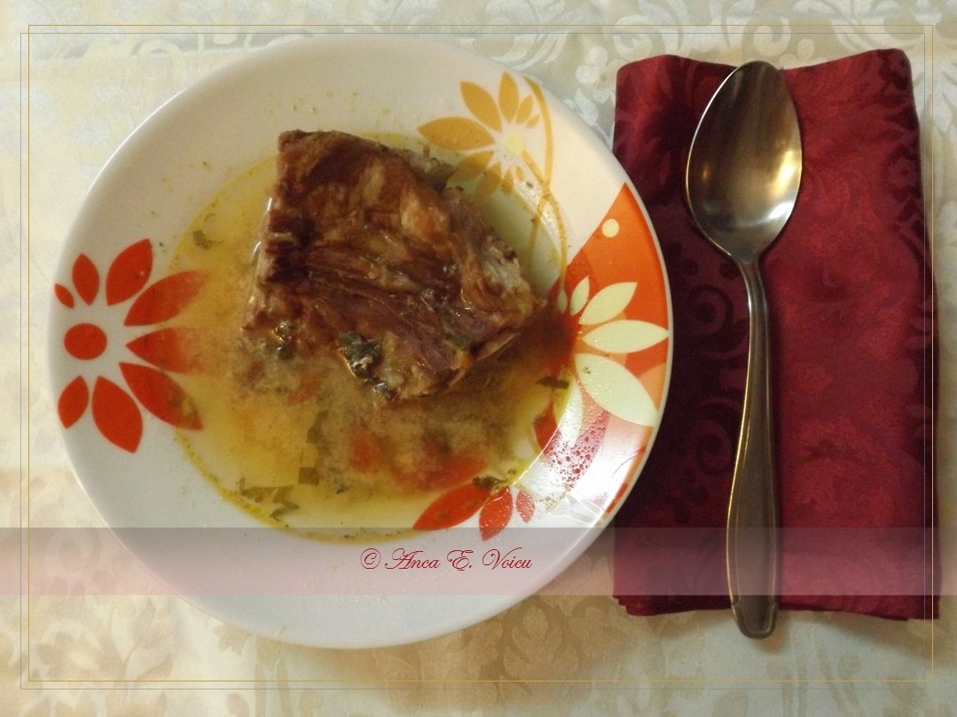 Cand este gata (carnea trebuie sa se poata desprinde de pe oase), se acreste cu 1 varf de lingurita sare de lamaie. Apoi, se bate oul intr-un castron si cu polonicul se ia din ciorba si se adauga peste ou, batand continuu. Se subtiaza astfel cu ciorba pana se umple castronul si se toarna in ciorba. Se amesteca bine.