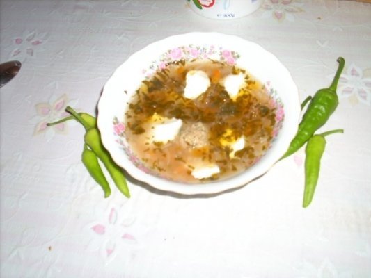 Carnea tocata se amesteca cu ouale,untul,verdeata taiata cat mai marunt,presarand sare si piper dupa gust.Se modeleaza cu manauda sau unsa cu ulei,se pun la fiert in oala pentru ciorba in care s-au fiert zarzavatul impreuna cu orezul si putina sare.Se acreste cu bors,care se fierbe separat si se strecoara.Iar la sfarsit se adauga deasupra leustean si patrunjel taiat marunt.Se serveste calda cu ardei iute si smantana.