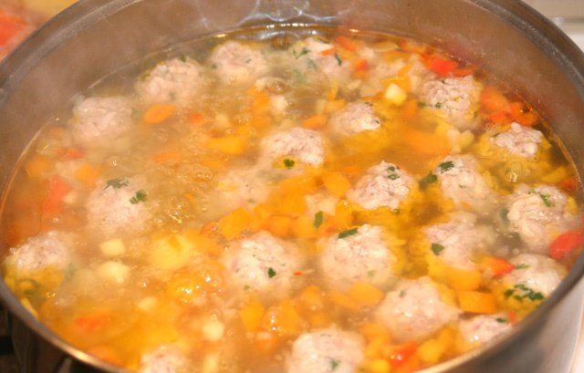 Dupa ce spalam bine legumele, le taiem cubulete, apoi adaugam apasi lasam sa fiarba.