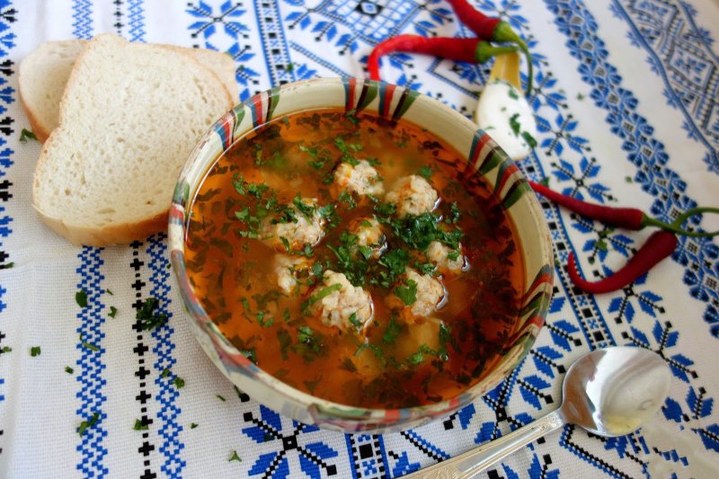 Pentru acestea, vom amesteca carnea tocata cu ceapa tocata marunt, orezul, oul, faina, patrunjel verde tocat. Amestecam bine, condimentand cu sare si piper si incepem sa formam perisoare, cat mai mici, ajutandu-ne de un bol cu apa rece. Adaugam rosiile blenduite in oala cu legumele. Dupa 2-3 clocote, adaugam cu grija perisoarele formate, avand grija sa reducem din intensitatea focului. Potrivim de sare, piper si acrim cu o cana de bors. Cand ciorba este gata, presaram patrunjel verde si o servim dreasa cu smantana dupa preferinta.