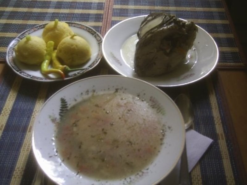 Ciorba se serveste calda sau rece dupa preferinta,cu mamaliguta si ardei iute.