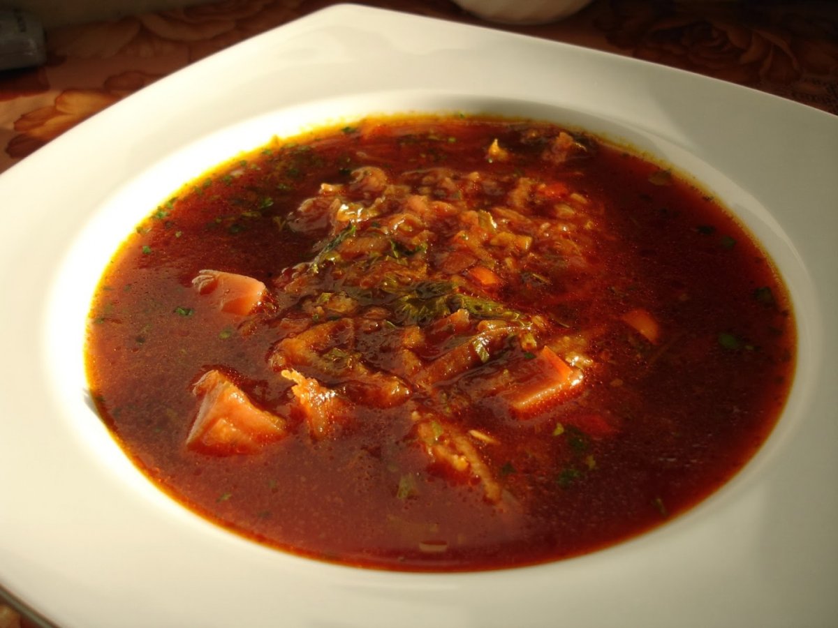 Calim ceapa tocata marunt dupa care adaugam morcovul ras, ardeiul tocat, legumele date prin razatoarea mare si adaugam apa fiarta. Spre sfarsit cand au fiert legumele adaugam condimentele, verdeata, borsul si pasta de rosii. Servim mai mult rece.