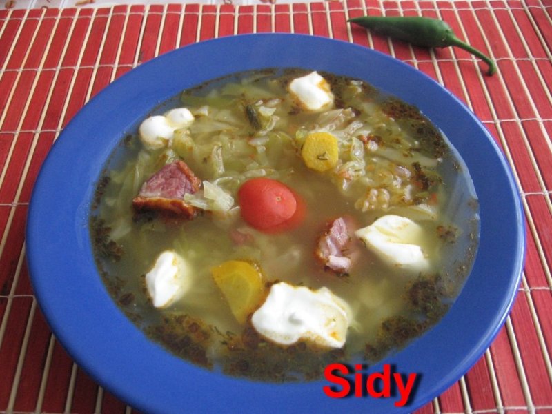 Varza o taiem dupa preferinta fideluta sau patratele si o adaugam in apa in care fierbe scarita. Adaugam apa daca mai este necesar, piper si boia.Lasam sa fiarba la foc potrivit pina sunt fierte toate.