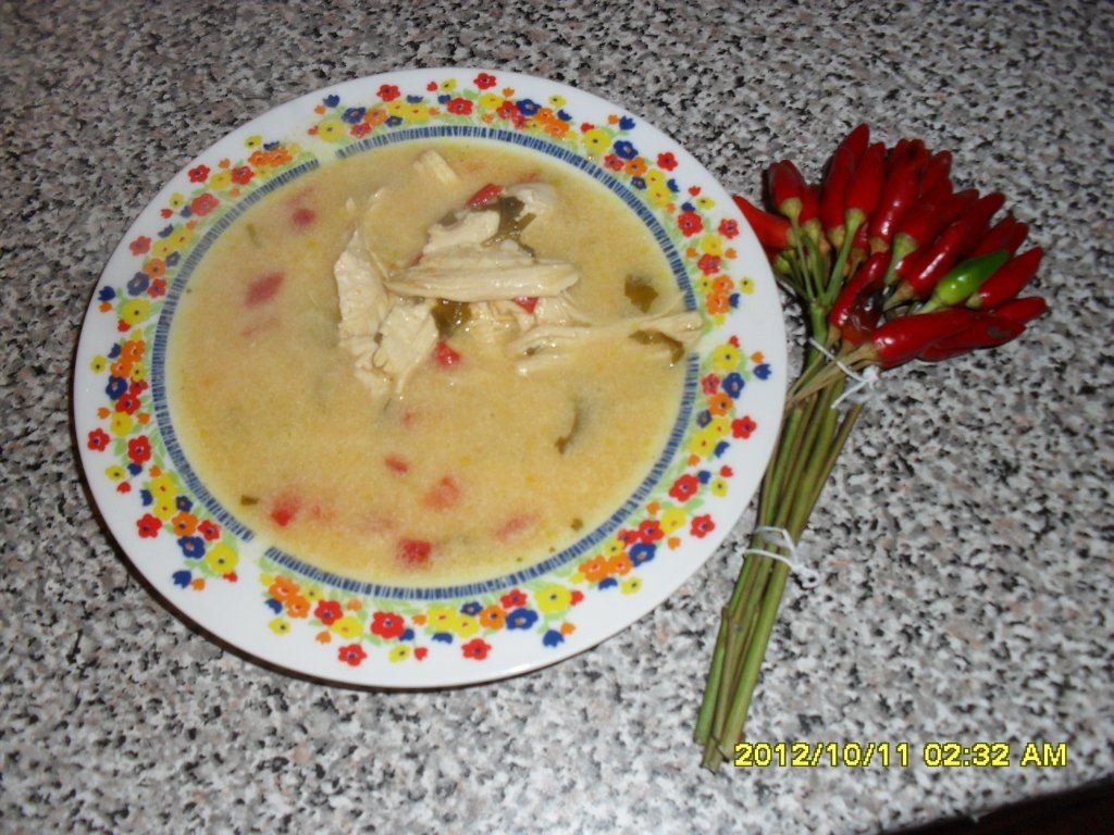 Aceasta ciorba se mai cheama si "Ciorba de burta falsa". Luam pieptul de pui si il curatam de eventualele pielite si il spalam de singe.Morcovii,telina,ceapa si cartoful le curatam de coji si le spalam bine. Ardeiul gras il taiem in 2 si il curatam de cotor si seminte. Dupa care le punem toate la fiert intr-o oala cu circa 4 L de apa si o lingura de sare. Acoperim oala cu un capac si lasam sa fiarba la foc potrivit circa o ora, indepartind spuma cind este si de cite ori este nevoie.Cind totul este fiert, luam oala de pe foc,scoatem totul intr-un castron si lasam sa se raceasca putin.Dupa care curatam ardeiul de coaja si il taiem cubulete mici.Pieptul de pui il rupem in fisii mai mici(nu il taiem) si il punem inapoi in oala impreuna cu ardeiul si dam la foc mic. Restul legumelor (ceapa,morcovi,telina si cartoful),le dam prin blender pina devin o pasta (cine vrea le poate taia si cubulete mici), diluam cu putina supa si le bagam in oala si marim putin focul. Daca folosim smantana si iaurt (trebuie neaparat sa fie la temperatura camerei), le punem intr-un castron si le amestecam bine, dupa care cu un polonic mic punem peste cite putina supa din oala si amestecam bine, pina cind devine fierbinte, dupa care le golim in oala si amestecam bine si lasam sa dea un clocot. Intre timp curatam usturoiul de coji si il pisam cu putina sare si cind ciorba incepe sa clocoteasca, il varsam in oala. Lasam sa mai dea un clocot dupa care dam focul la mic si introducem zeama de la o lamaie si patrunjelul tocat marunt, potrivim de sare si eventual putem acri cu otet (eu prefer sa o acresc in farfurie), stingem focul si ciorba este gata.Se serveste calda cu ardei iute.Pofta buna!