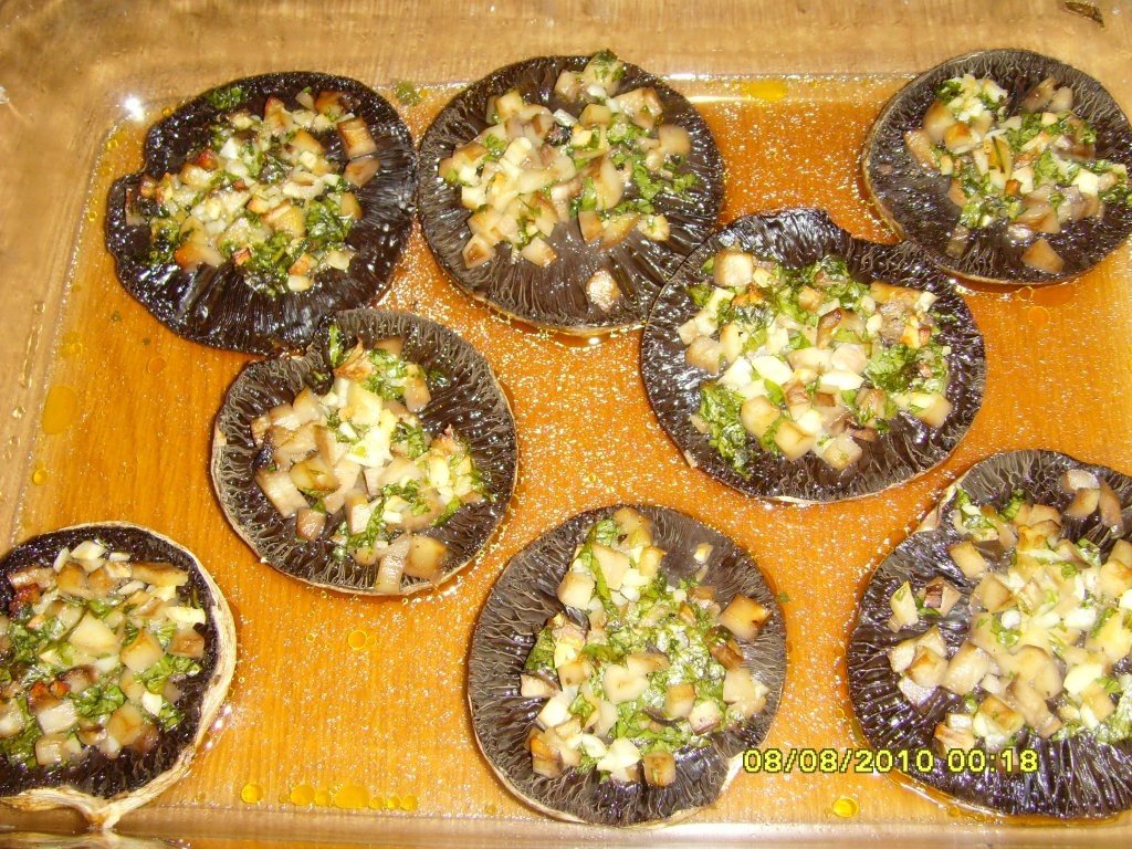 Asezam ciupercile intr-o tava si le dam pe fiecare in parte cu sare si adaugam in fiecare cate o lingura de compozitie.Se introduc in cuptor si se lasa aproximativ 30 minute.