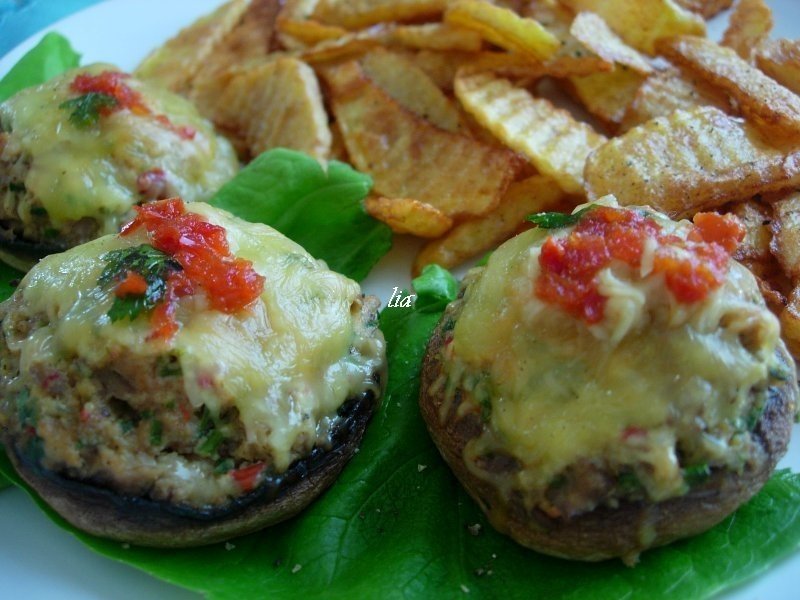 Reteta de ciuperci umplute. Ciuperci umplute cu piept de pui reteta gustoasa si usor de preparat. Retete cu ciuperci.
