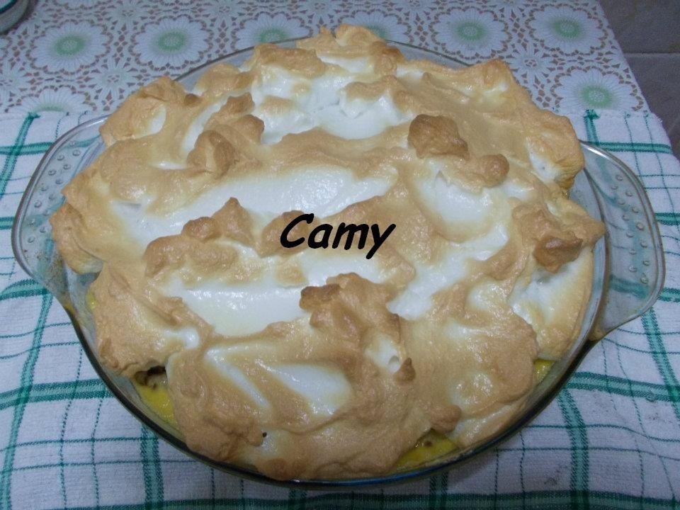 Cand crema incepe sa se inchege pe margini, scoatem tava si punem deasupra bezeaua incercand sa acoperim uniform toate clatitele.