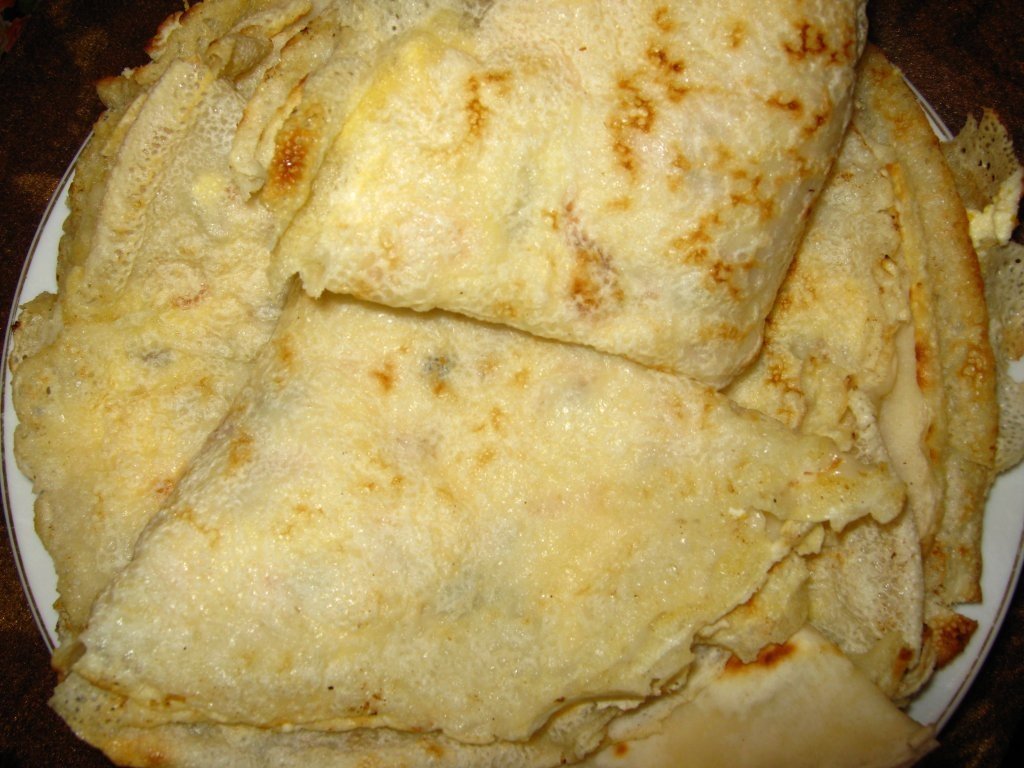 Se lasa circa o jumatate de ora stafidele la inmuiat in esenta de rom, apoi se amesteca cu branza dulce, coaja de portocala rasa si zahar pudra, dupa gust. Se coc foile de clatita si se umplu cu aceasta compozitie. In functie de gust, se poate pune coaja de lamaie in loc de coaja de portocala.