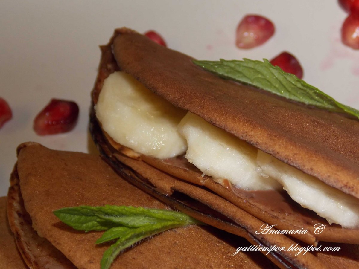 Cand clatitele sunt gata umpleti cu crme de branza si 2-3 felii de banana.