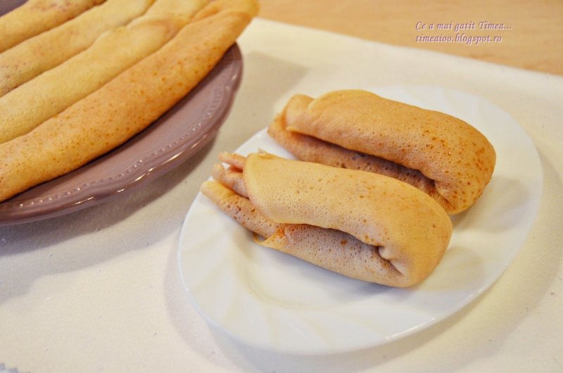 Scoatem clatitele pe o farfurie apoi le ungem la alegere cu gem de prune, caise sau orice alt gem va place
