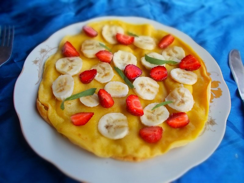 Lasam amestecul sa stea 30 de minute. Dam drumul la cuptor la foc mic spre mediu si introducem o tigaie din fonta timp de 5 minute. Scoatem tigaia, adaugam untul si punem jumatate din compozitia de clatite. Punem tigaia in cuptor si lasam sa se coaca 15 minute, fara sa intoarcem clatita. Dupa ce am terminat toata compozitia, servim clatitele cu fructe proaspete si putina miere! Enjoy!