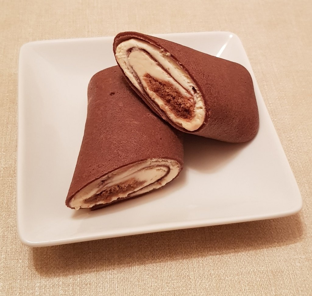 Se trece cate un piscot prin cafea si apoi se pune peste crema de mascarpone. Se ruleaza clatitele si se pastreaza la rece. Sunt absolut delicioase.
