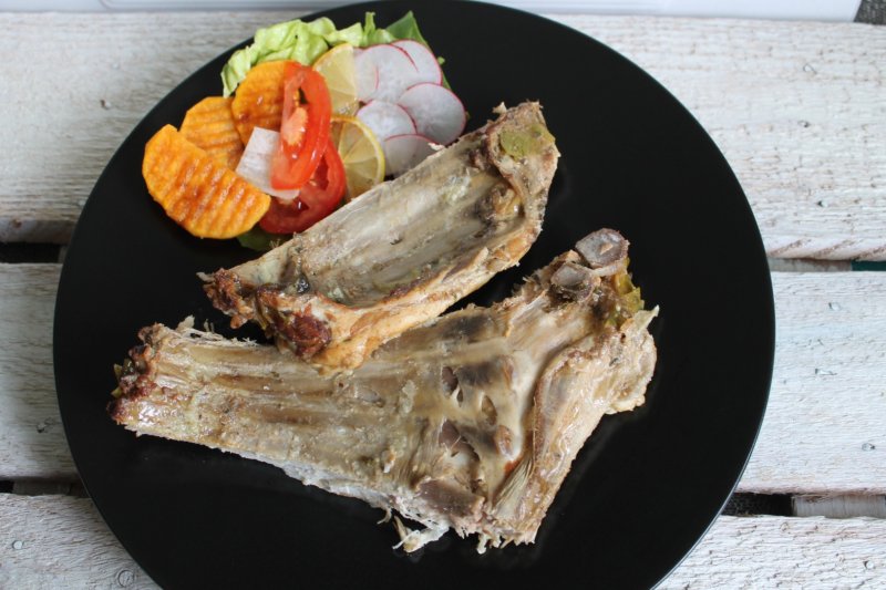 Din ulei, muștar, bere, vin și mirodenii se face un sos omogen, cu care se ung coastele.