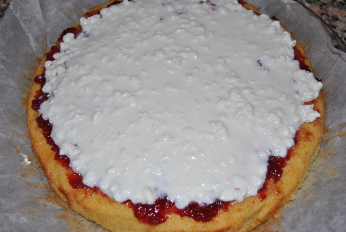 Primul blat se unge cu dulceatã si jumãtate din crema de urdã, se pune al doi-lea blat si se unge cu restul de urdã.