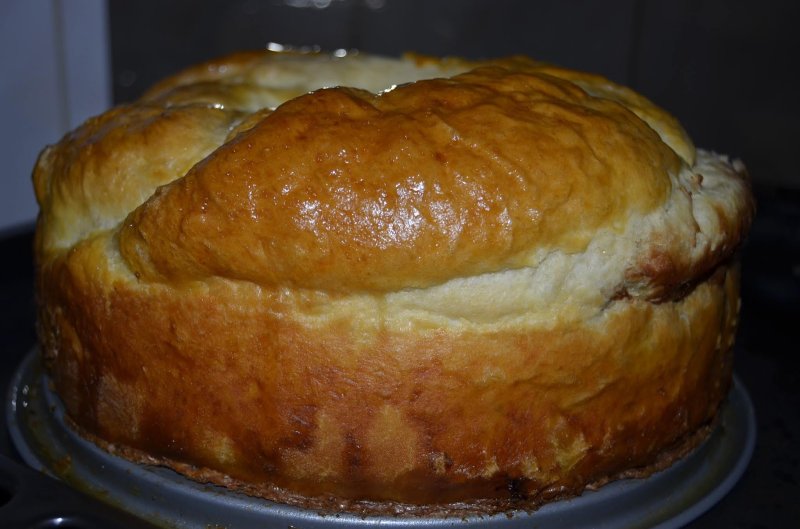 Se scoate aluatul, se intinde o foaie mare si cat mai subtire, se unge cu magiun de prune, se ruleaza si se pune in tava cu forma de colac. Se lasa pe aragaz pret de 10 minute sa inceapa sa creasca apoi se unge cu ou batut si se da la cuptorul incalzit, la foc potrivit pentru circa o ora sau pana cand se rumeneste frumos. Cand este copt se unge cu miere de albine si se poate servi. Sa aveti pofta si la pofta dragilor!